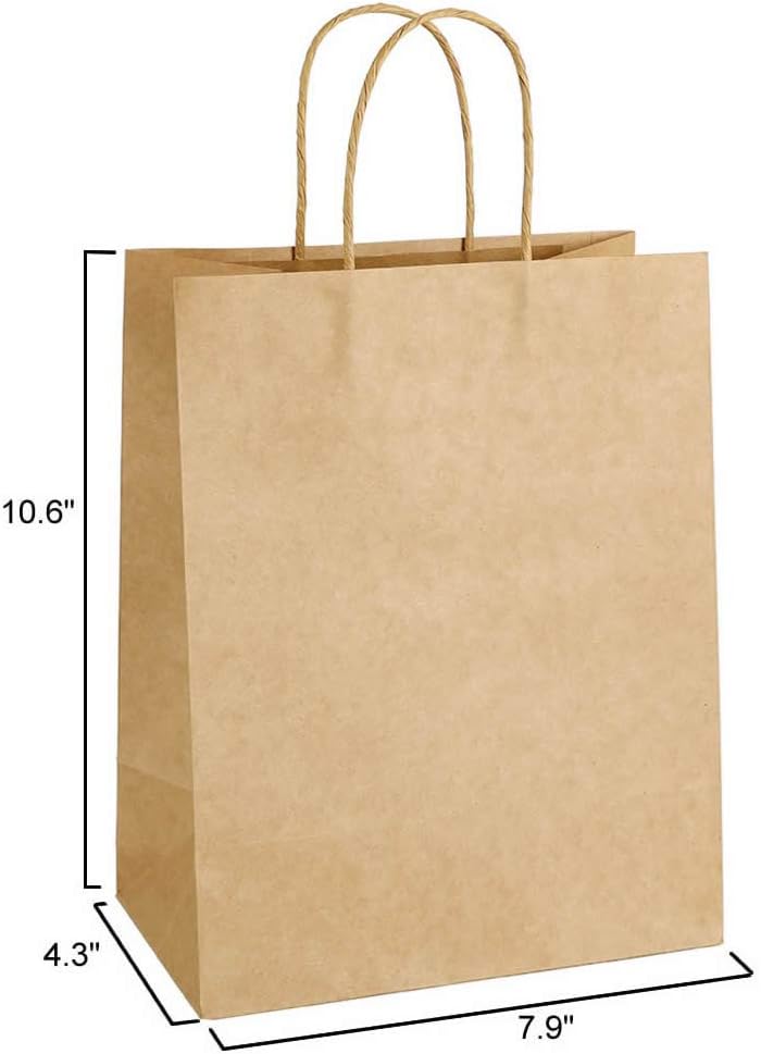 【Precise Size】 7.8″x4.3″x10.6″ (20x11x27cm) commercial-grade dimensions, ideal for boutique shelves/counter displays. Made with 110gsm reinforced kraft paper, tested to hold 8 lbs securely. Double-stitched handles prevent tearing, ensuring reliable packaging for luxury goods.