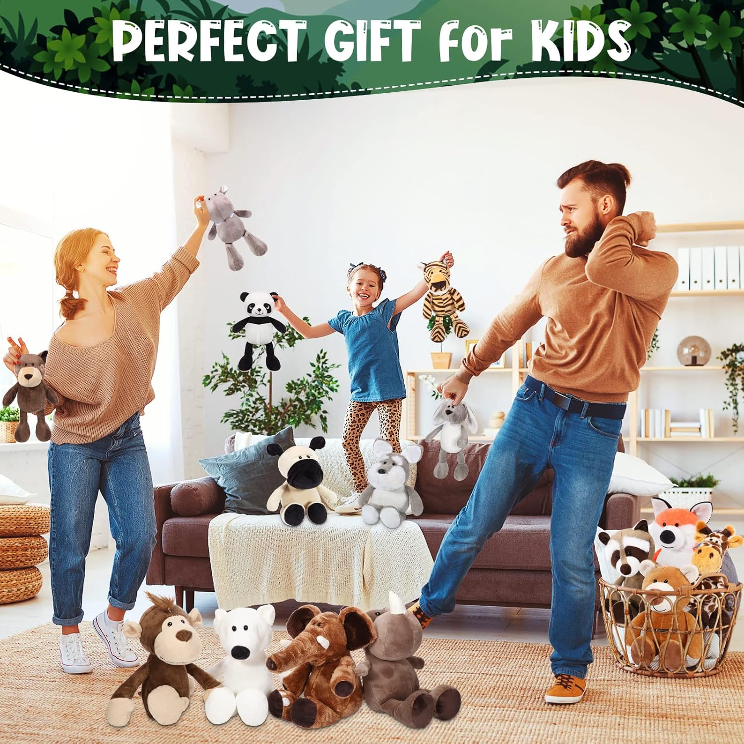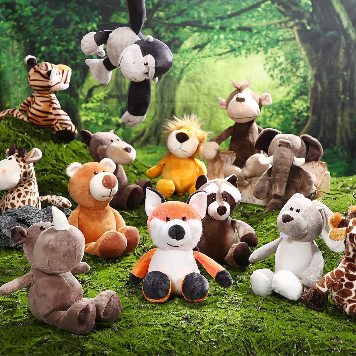 Safari Animal Toy Set: you will receive 24 jungle stuffed animals, including elephant, giraffe, lion, tiger, zebra, rhinos, wolf, gorilla, hippos, monkeys, pandas, etc., in a variety of quantities and styles to meet your sharing and decorative needs