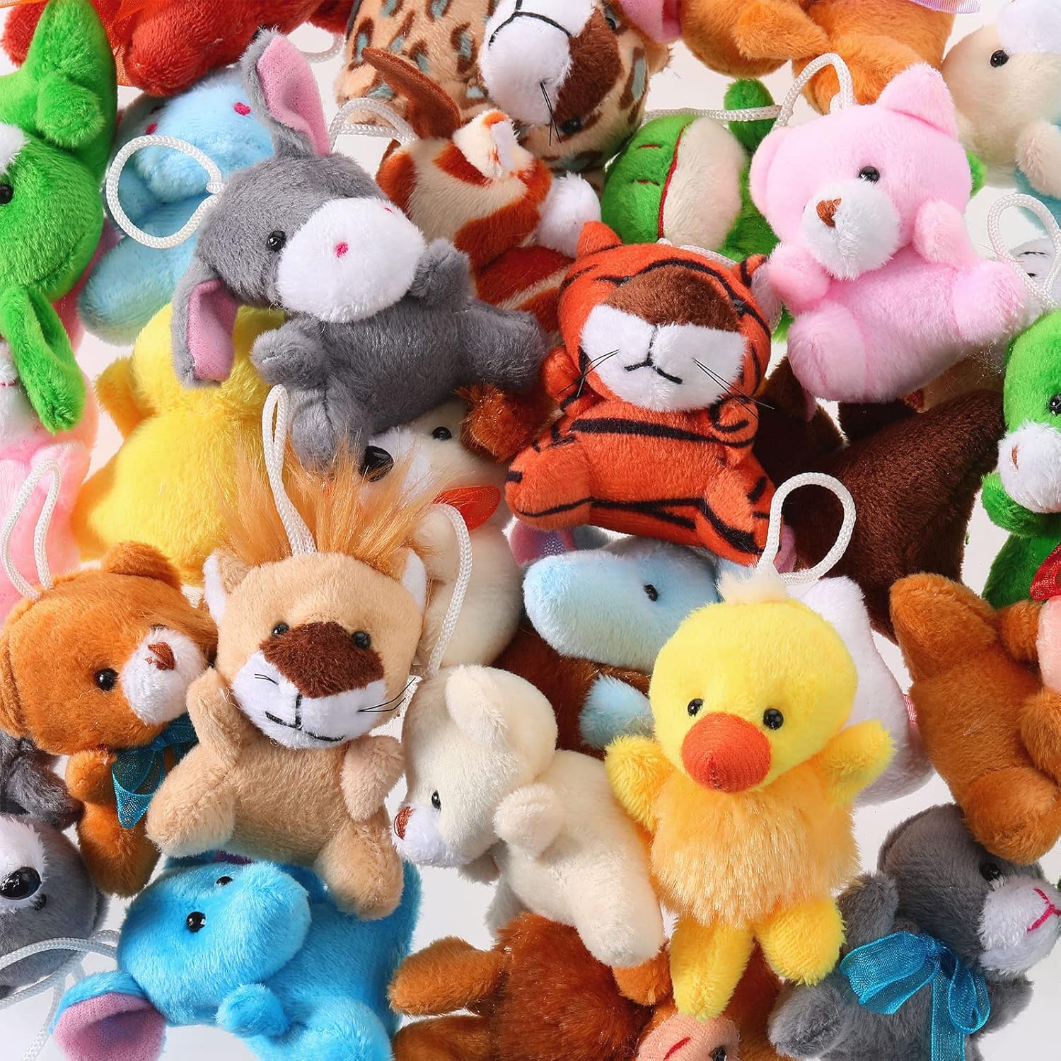 Skylety 60 Pack Mini Plush Animals Bulk Mini Stuffed Animals Plush Toy Small Stuffed Keychain Cute Assortment for Carnival Prizes, Party Favor, Kindergarten Goodie Bag Fillers
