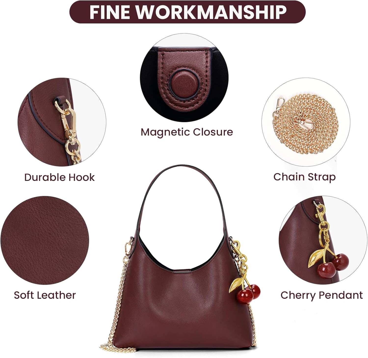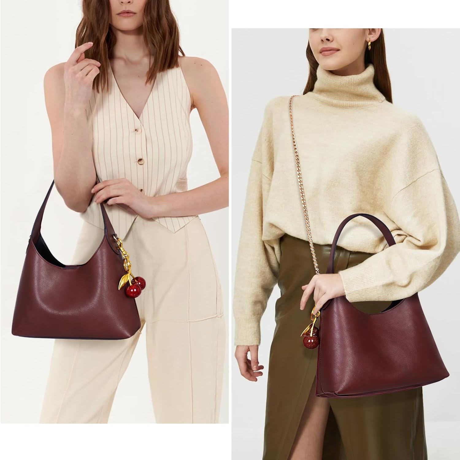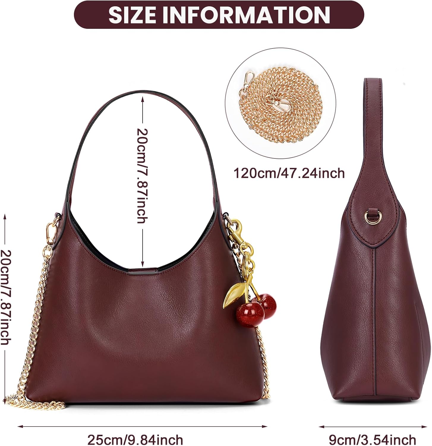 Small Hobo Bags for Women Cherry Shoulder Bag Purse Faux Leather Tote Handbag Trendy Chain Crossbody Bag