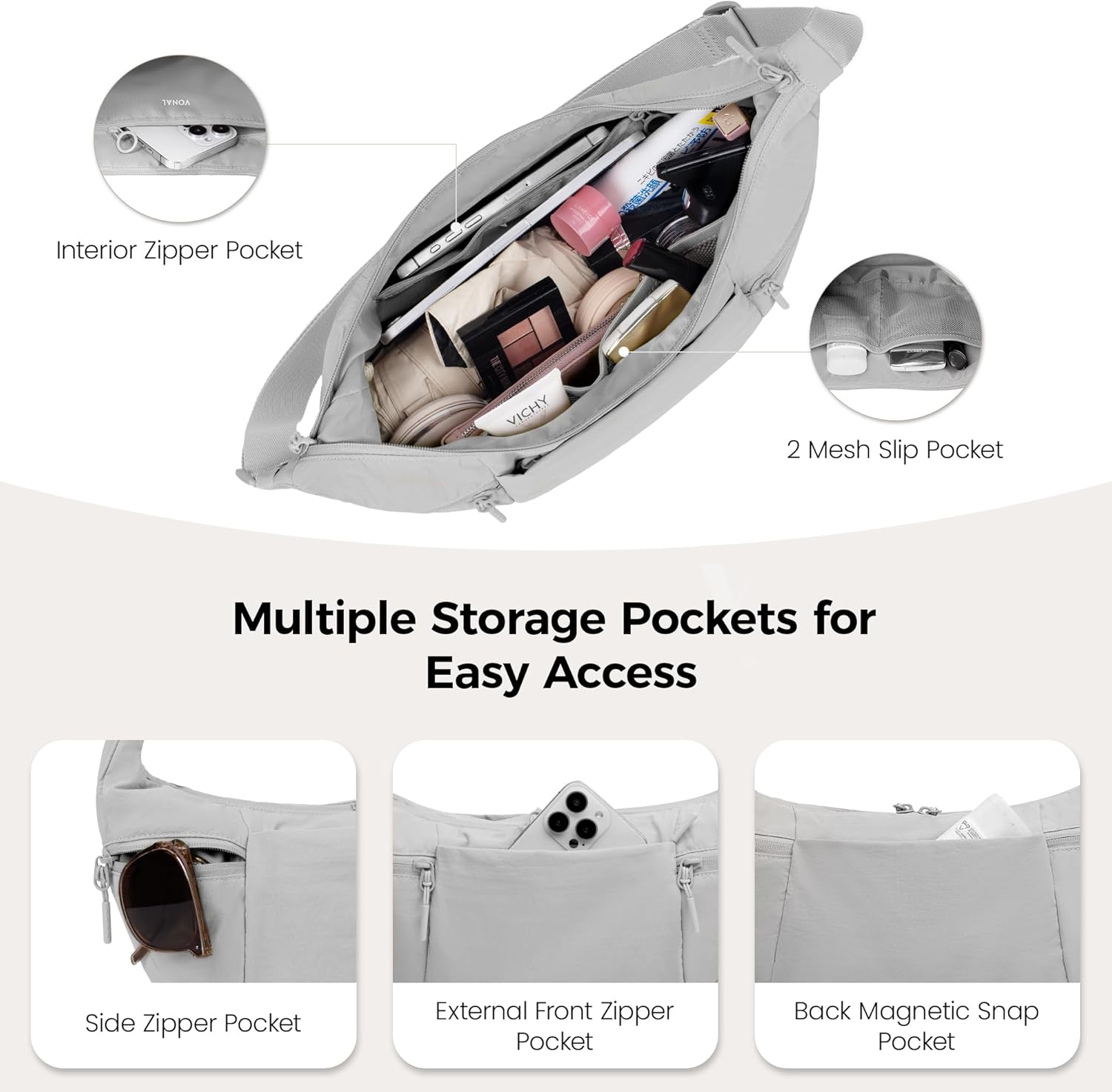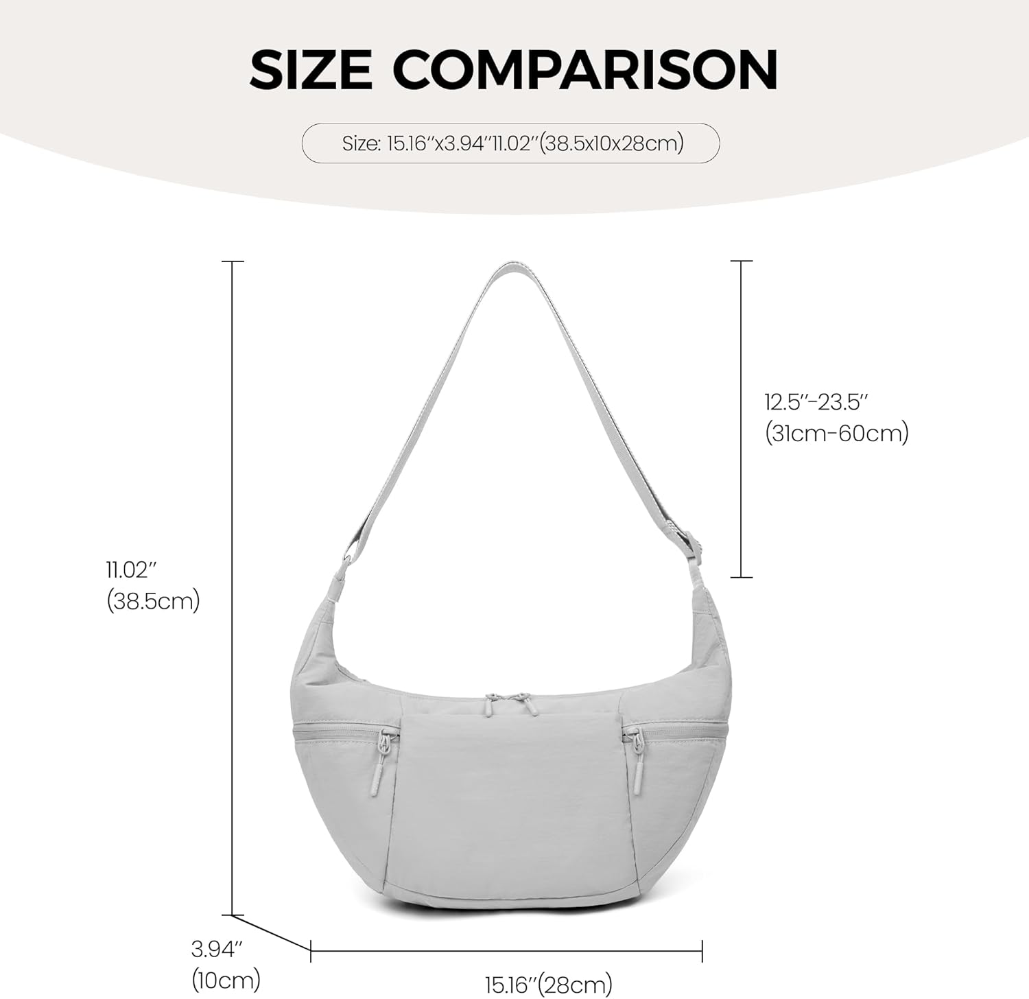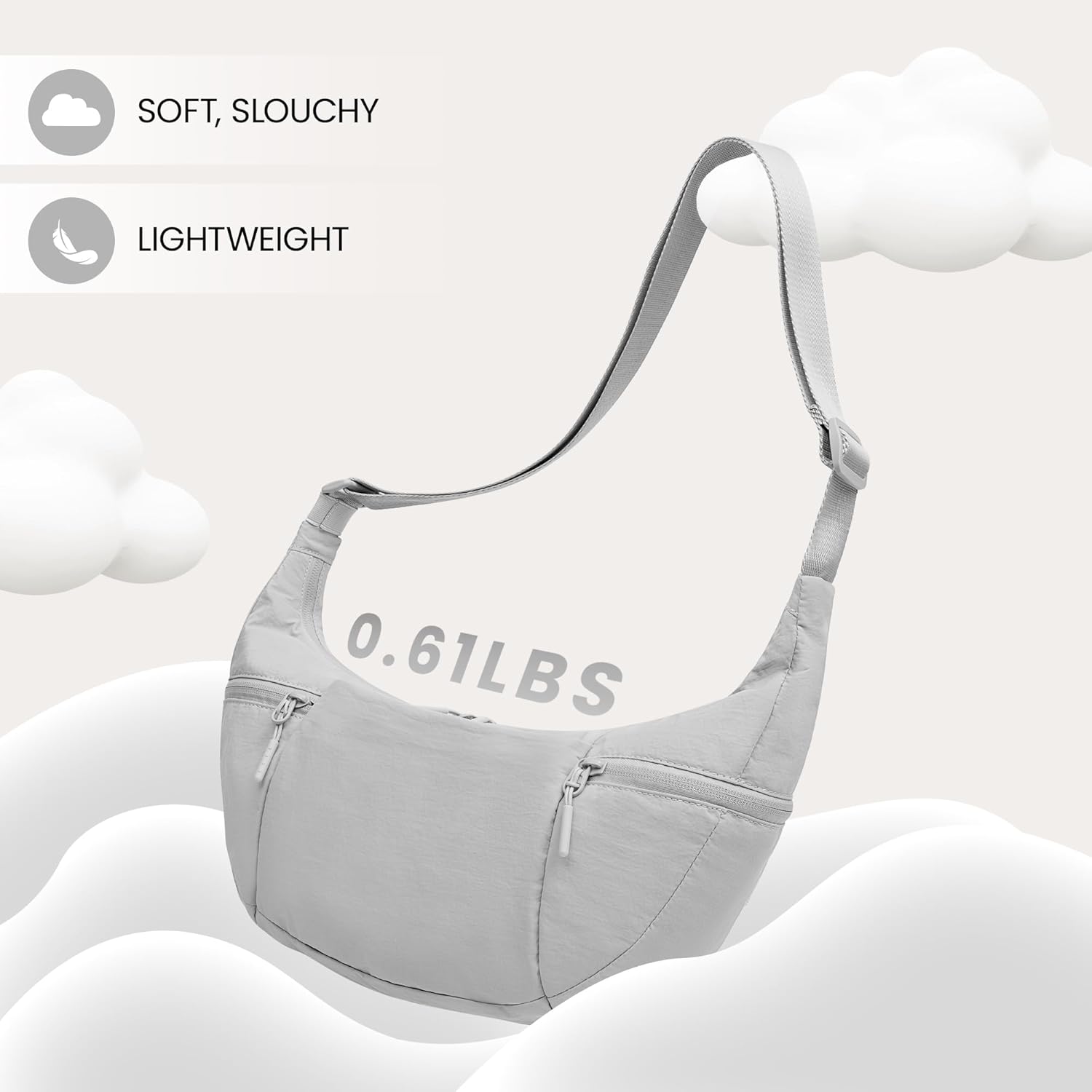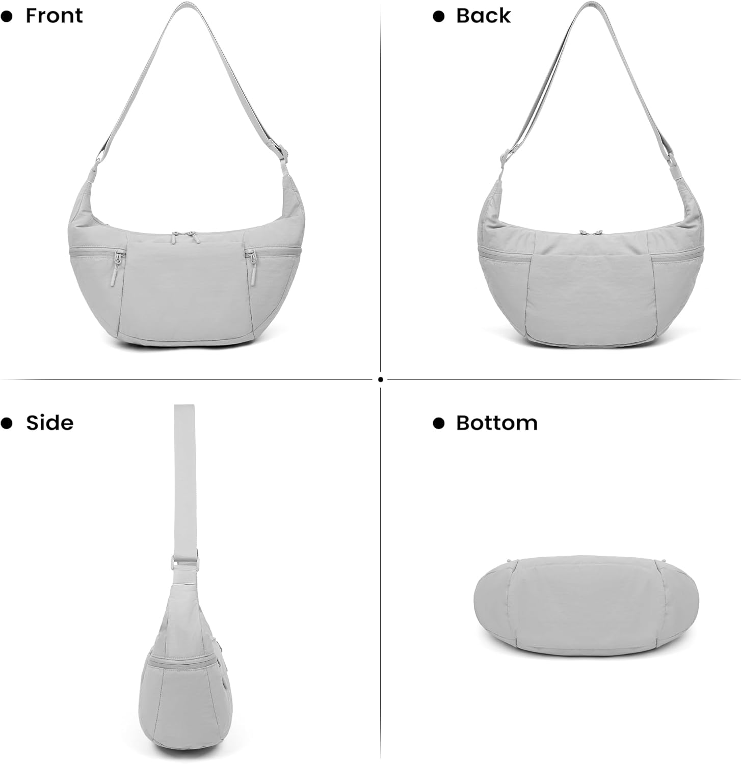 VONAL Nylon Crescent Crossbody Bag, Sloughy Shoulder Hobo Bag for Women, Lightweight Moon Bag Dumpling Sling Bag Purse